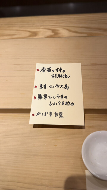福菜は、舞茸としらすのしょっつる炒め、春菊と柿の胡麻浸し、鮪スパイス煮、かぼす白菜とどれもちょっと珍しい組み合わせですが、味のバランスも絶妙で美味‼️