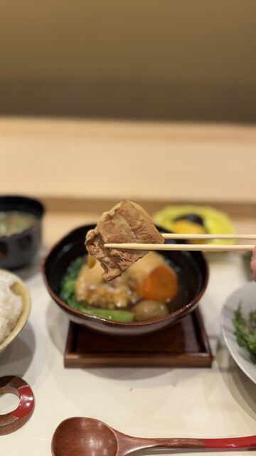 内幸町の紹介制のお鮨屋さんのランチタイム限定メニュー。本日は「豚の角煮膳」❗️