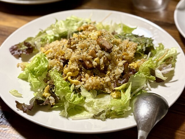 お嫁さんは、イタメンについて息子からいろいろ聞いていたものの、なかなかイメージがわかなかったようですが、食べてみて、美味しい!新感覚!と感激してました。ゴルゴンは、息子にとっては青春の思い出の味ですかね〜 他の3人から焼き豚を貰って、小鉢のサラダを全部放り込んで、味わうように食べてました。連れてきて良かったです。マイルドになったペペロンライスは、自分達夫婦にちょっと取り分け、あとは息子夫婦に任せました。まぁ よく食べる奴らです。
