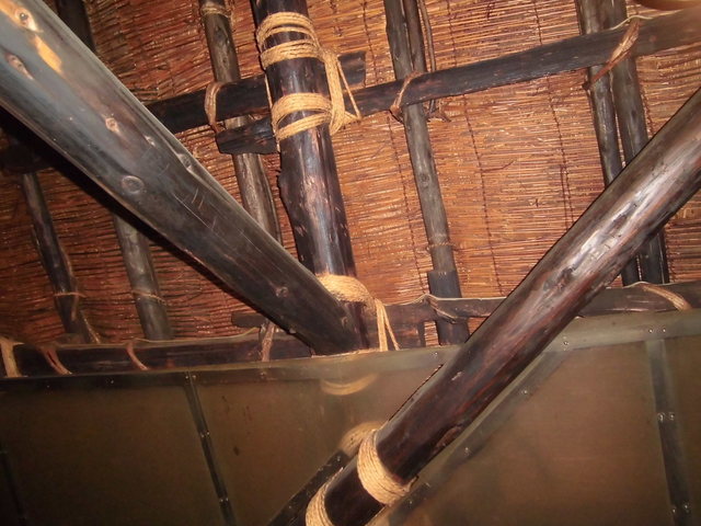まず目に付くのは飛騨高山から移築した合掌造りの建物と内装です