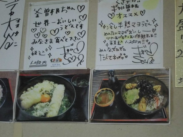 ここのうどん屋さんは何十年も前からあります 数十年前に一度行きましたは本日 久しぶりに行きました 入店をしましたらお客さんは2人だけでした 先ず冷酒を注文 おでんがありまして モツ・卵・大根 計8本注文 一本¥85円は安いですね テーブル席は4席 カウンター席は4~5名 座敷が3テーブル 結構座れます 壁にはギャル曽根・くさでかの色紙が貼ってあります
