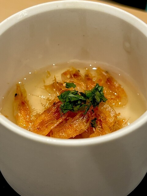 最初に出てきたとうもろこし入りの峯岡豆腐が甘くてムースみたいで美味しい。