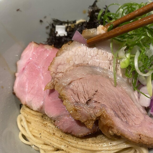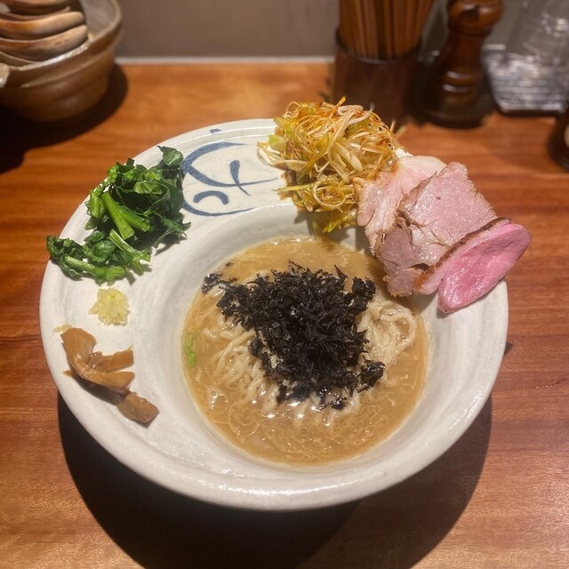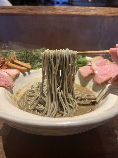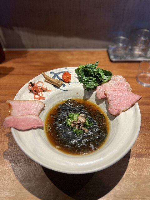 メニュー名に負けない鴨と牡蠣の濃厚さとカエシの塩とのバランスが素晴らしい。牡蠣ペーストをboostすると濃厚さが増します。そして焦がしネギがアクセントに。