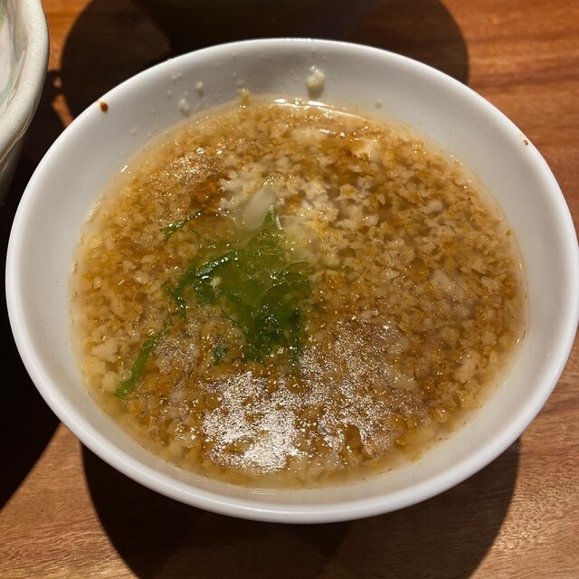 川俣シャモの鶏油の醤油ベース。いつもより醤油が濃く感じたけど店主が気を遣ってくれたのかな?椎茸との相性、昆布水との相性、柑橘系との相性それぞれ抜群です。青唐辛子を入れるとピリッとアクセントに。最後のスープ割りは必須です!