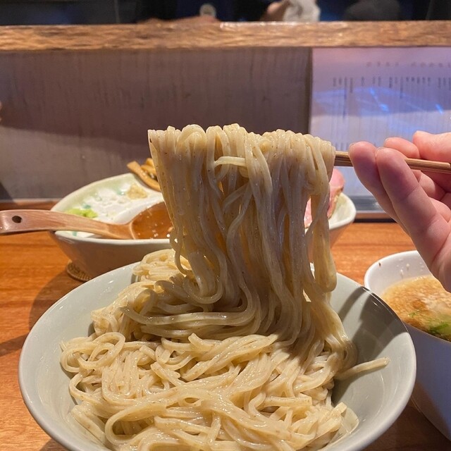 濃密でどろっとして煮干しが効いたつけ汁。これも無化調です。粘度が高いので麺との絡みも抜群でした。