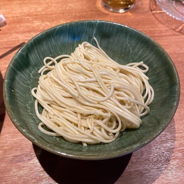 これ格別に美味かった。幻のバター、カルピスバター香るつけ汁は鯛も蟹もいいとこどりで旨味に優しく包まれる。こんなつけ汁初体験。椎茸と三つ葉とネギもいい味出してる。最後に青唐辛子でピリッと締めました。