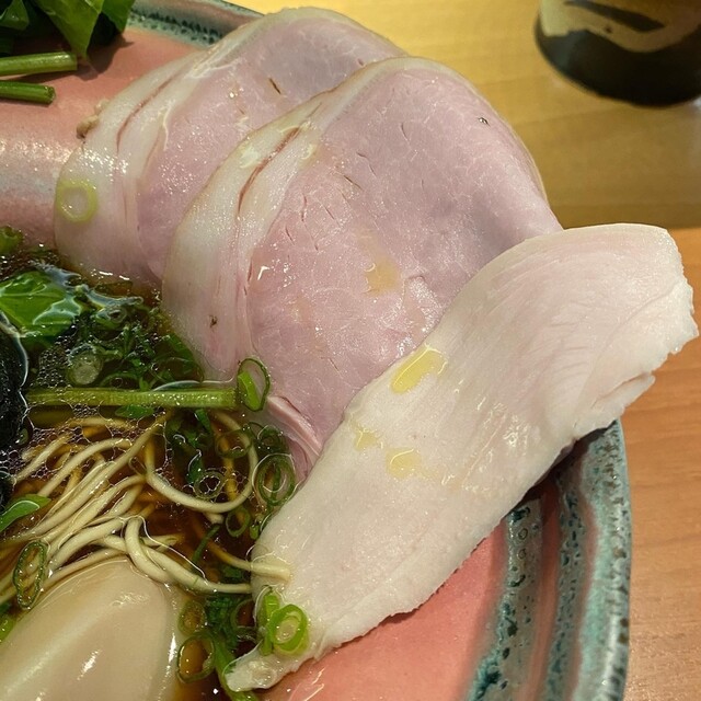 トッピングは低温鶏胸、低温豚ロース、炭火吊るし豚バラ。吊るしのスモーキーさは最高だし、今日の鶏胸はコリコリ具合が美味しかった。
