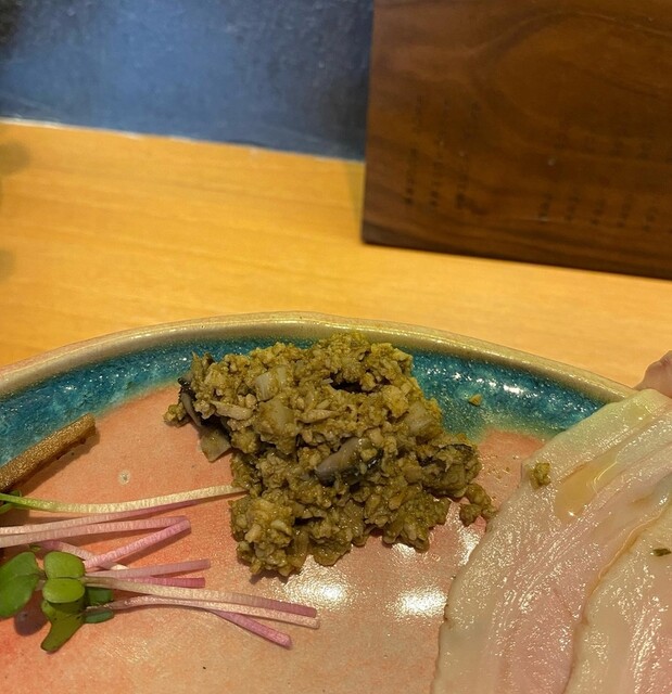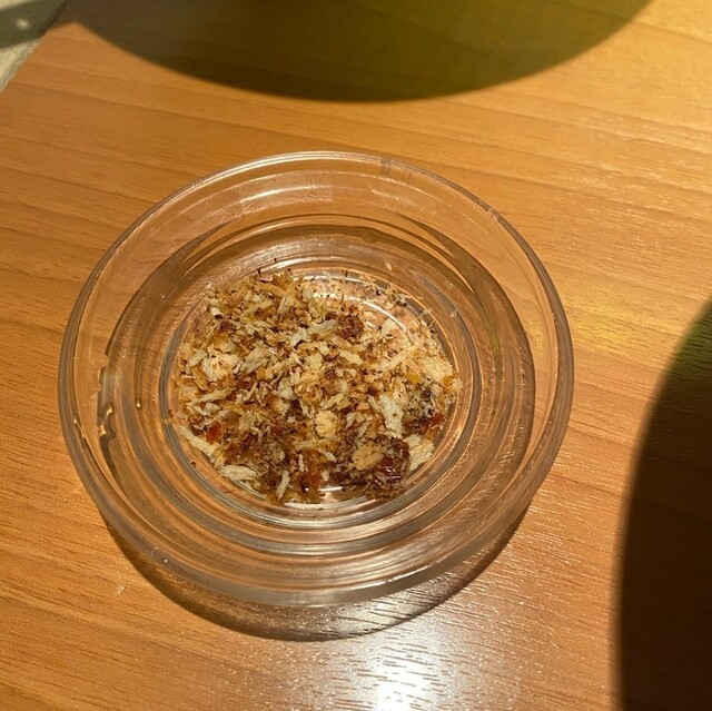 甘海老の頭をアホみたいにぶち込んだとの事でしたが、本当にアホみたいエビ!!これ海老好きにはたまらないくらい濃厚。どろっとした濃厚な新鮮なエビを使ったスープは他では飲めないと思います。