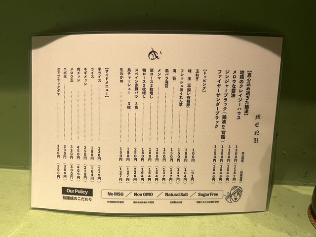 ★拉麺成の2号店の無化調で素材にこだわるお店