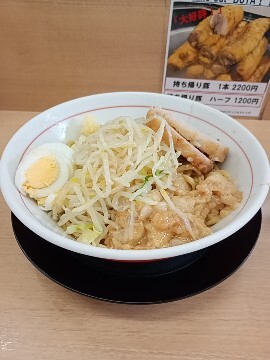 券売機にて「麺類の食券」と「限定への変更券」の組み合わせを購入。コールは「ニンニク・アブラ」でお願いし、到着を待ちました。