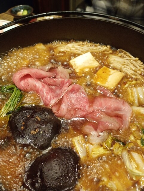 落ち着いた雰囲気の中、今回は「黒毛和牛サーロインすき焼きコース」を堪能してきました。