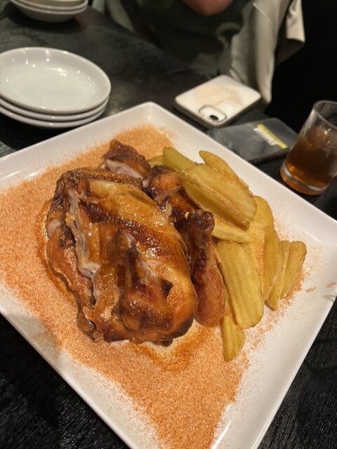 鶏肉のやつ、皮がパリパリで粉まぶすと永遠に食べれる、最高!