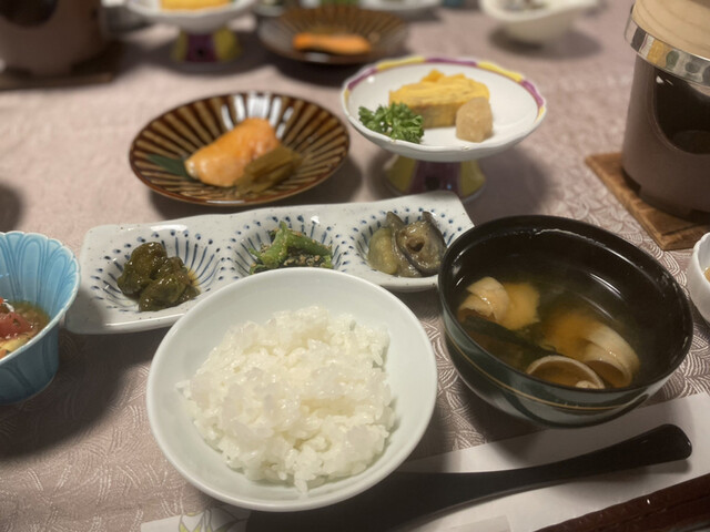 朝ごはん。米どころならではで、やはりお米が美味しい。