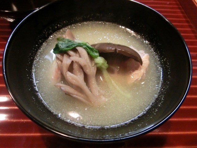 鶏肉、エビイモ、くわいの炊き合わせ:鶏肉が甘くていいですね。こちらも、だしが最高。