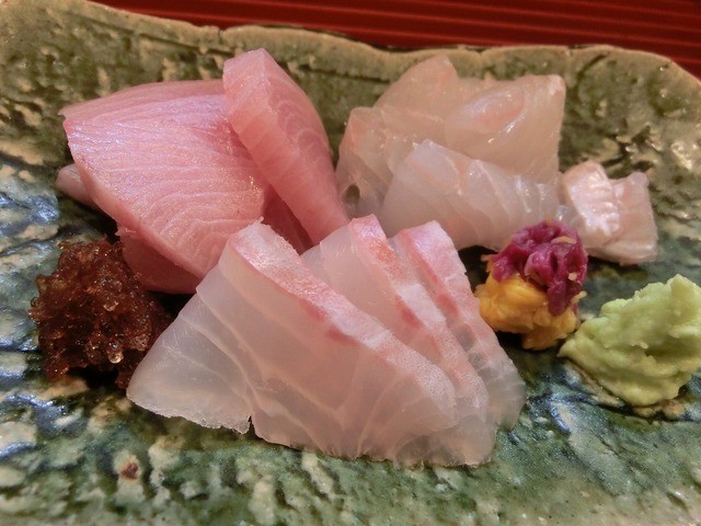 お造り:ヒラメ、ブリ、石鯛の3種。旬のものだし、物がいいですね。石鯛のややさっぱりだけど、官能的な甘みは素晴らしい。かなり満足。