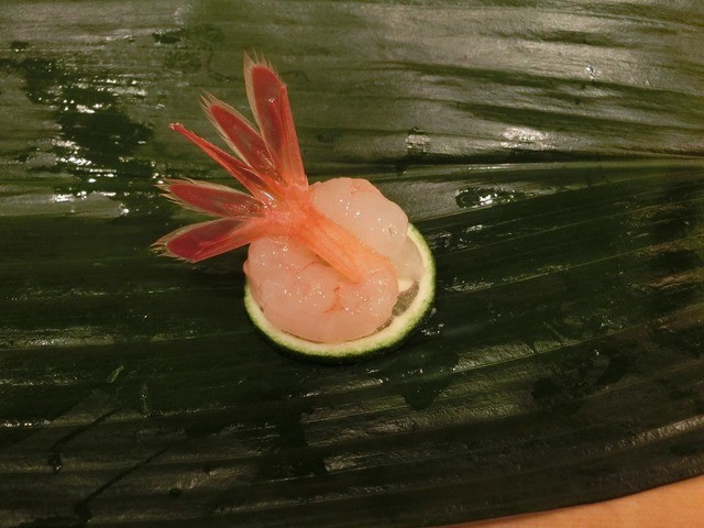 料理:糸もずく、炙りカツオ、ノドグロ、アラ、アゲマキ貝、煮アワビとその肝、自家製からすみ、伊勢海老とその内子