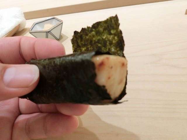 握り:イカ、めいち、コハダ、タコ、アジ、カスゴ、ヅケ、インターバルで稚鮎、中トロ、ウニ(産地忘れました)、ウニ(唐津)、煮ホタテ、車エビ、穴子(塩)、鉄火巻