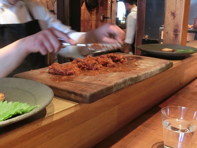 馬肉タルタル、大葉