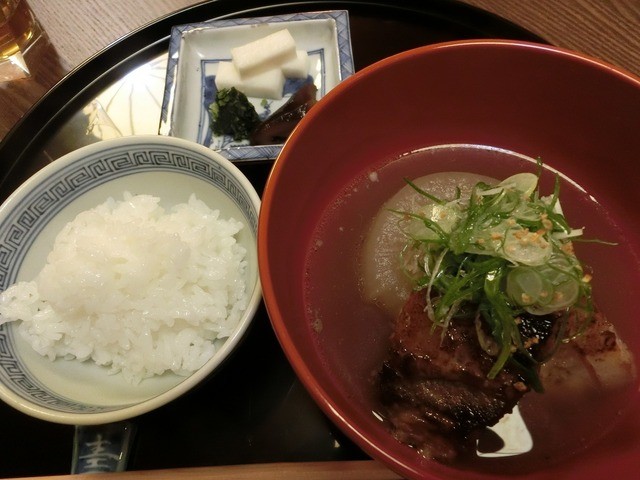 猪肉の椀、ごはん、香の物