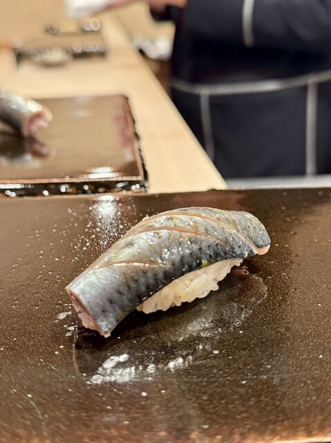 シャリには胡桃の飴煮が混ざっており、若干の甘みで、シメサバの臭さを低減。これは無限に食える。そろそろ頭の上に天使が回り始めます。