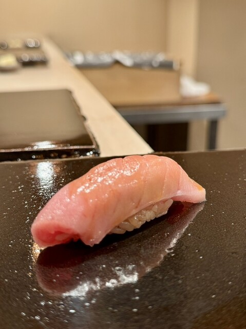 血生臭さが全くない赤身。マグロの味の濃さ、舌にまとまりつく感じがよき。