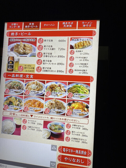 まずは券売機で「北京餃子」に「ニンニクぬき」に「瓶ビール中瓶540円」のボタンをポチッとな。