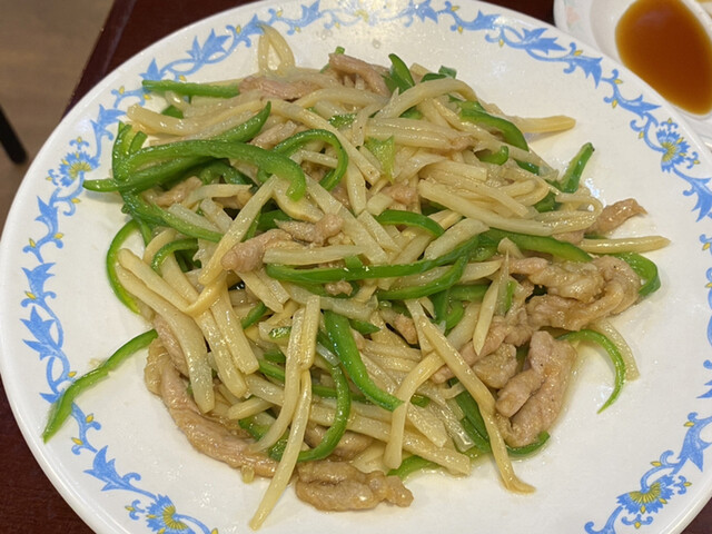 筍とピーマンとコーティングされた細切り豚肉がたっぷり。
