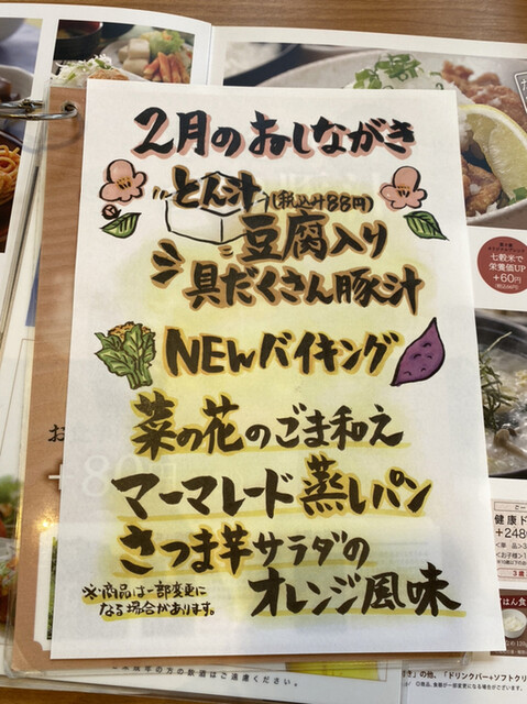 和洋定食にお惣菜とサラダバイキング付きというサービスが嬉しいチェーン店です。