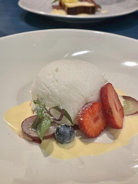メインのお肉ももちろん美味しかったが、感動したのは真鯛のポワレ。ふわっふわの身とパリパリの皮の食感のギャップが楽しい一皿。