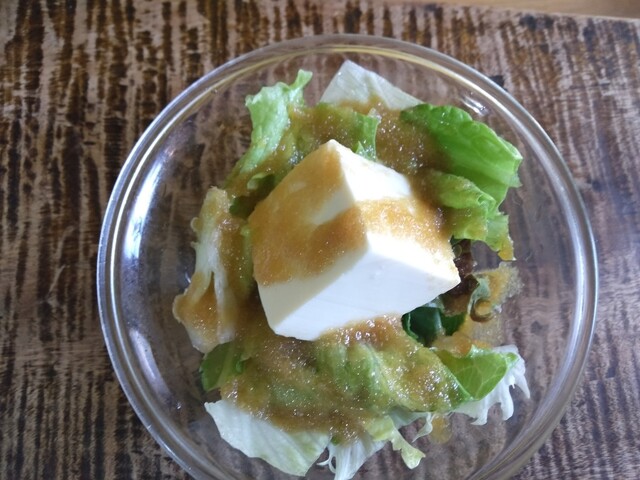 前菜のサラダは豆腐とレタスに、甘く香ばしいジンジャードレッシングがとても好きで、絹豆腐をおいしいと思うことなんかめったにないのですが味わってしまうのです。