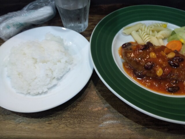 たまにしか来ないので断定できませんが、こちらのランチはハンバーグのソースが日ごとに違うだけで、他はほぼ一緒だと思います。