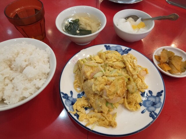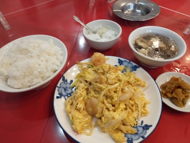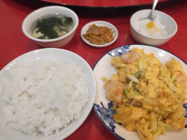 本日の日替わりランチの中から、卵とえびの炒めもの。