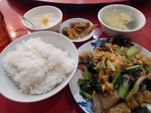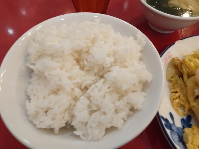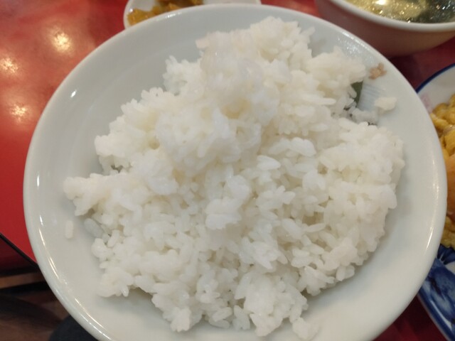 御飯は初めから大盛り、餡の入った卵スープ、メンマ、杏仁豆腐というおなじみの中華ランチ。