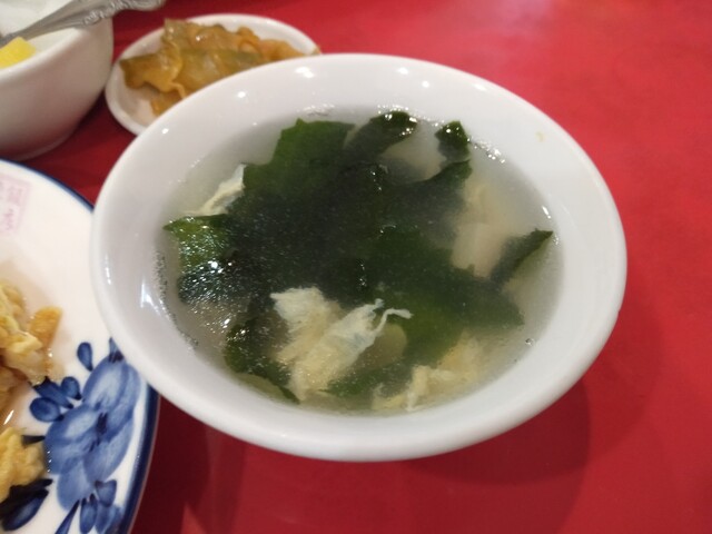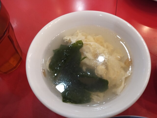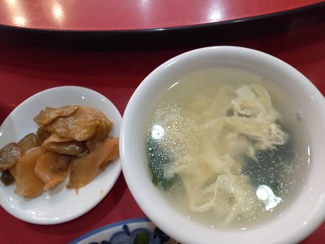 メンマは少しのピリ辛が食事にアクセントを齎し、薄味のわかめと卵のスープはいつもここにある安心感。