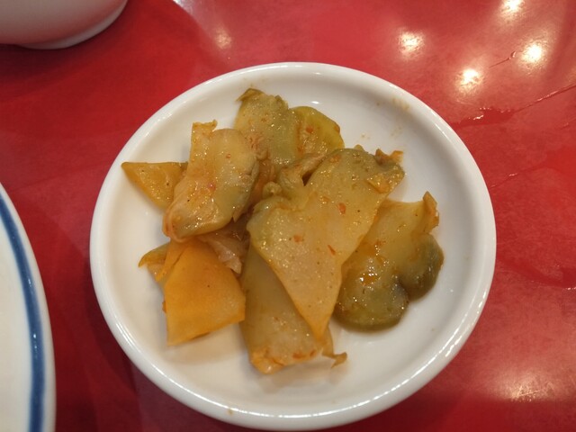 横に添えられているメンマ、卵スープもあっさりしておりよい。