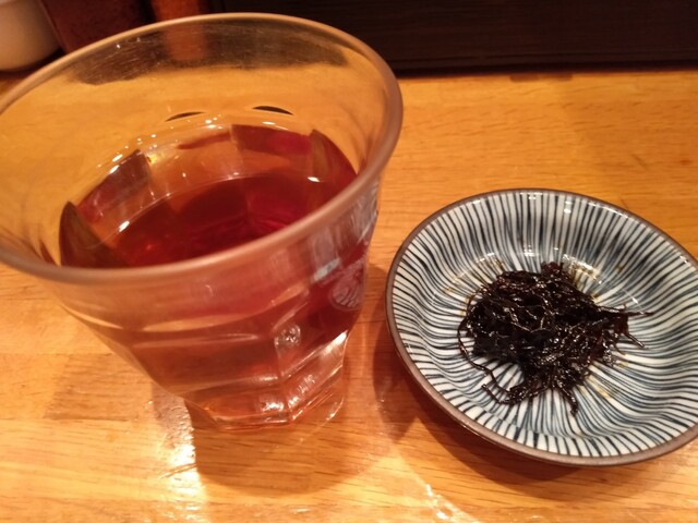 はじめに麦茶と、キュウリの浅漬けを出していただける。