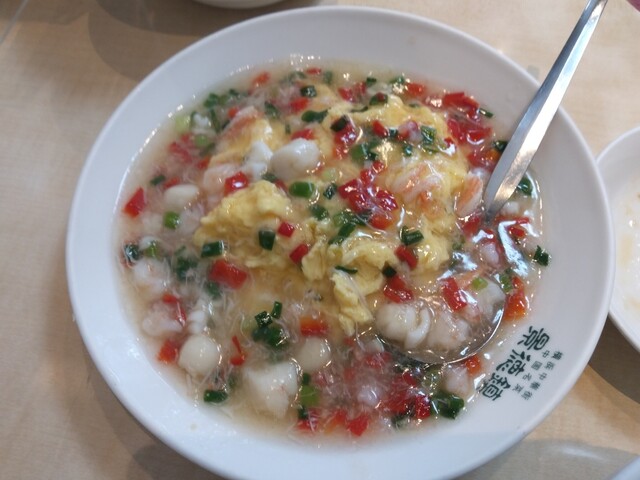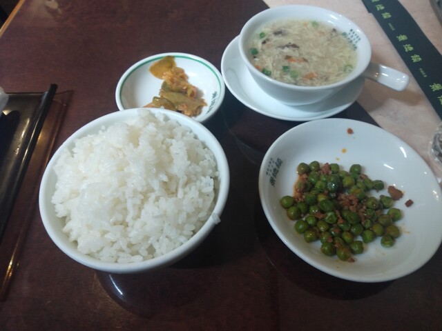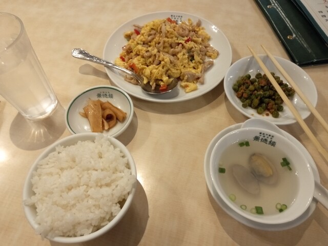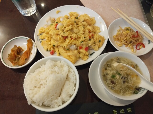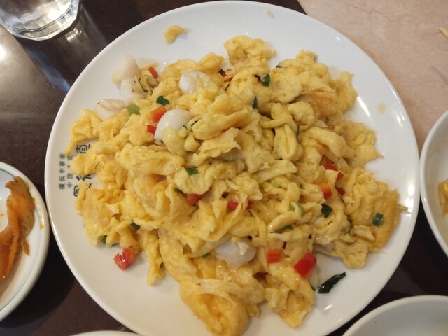 日替わりランチの小柱と卵の炒めは丸く甘い味がおいしい。