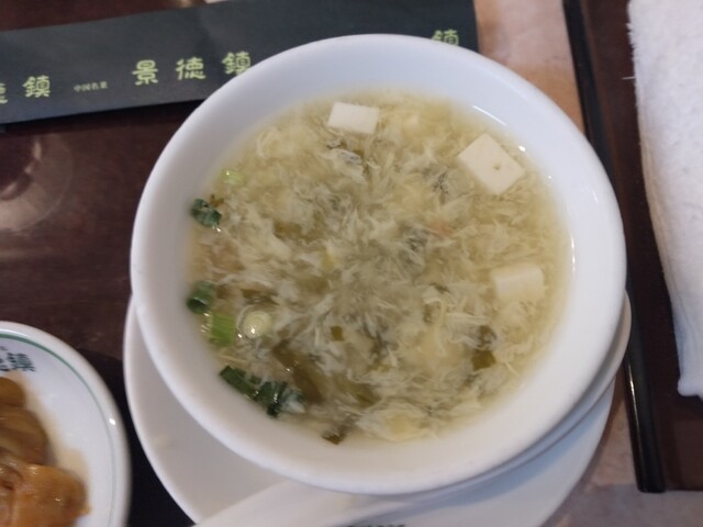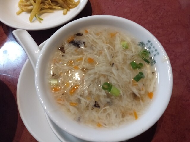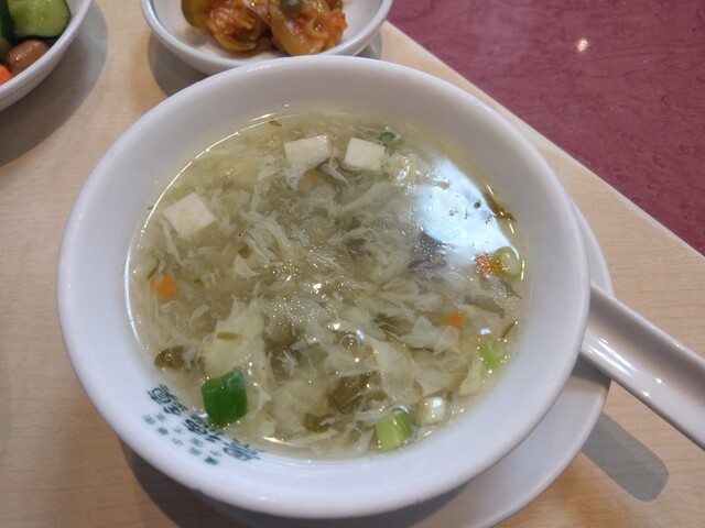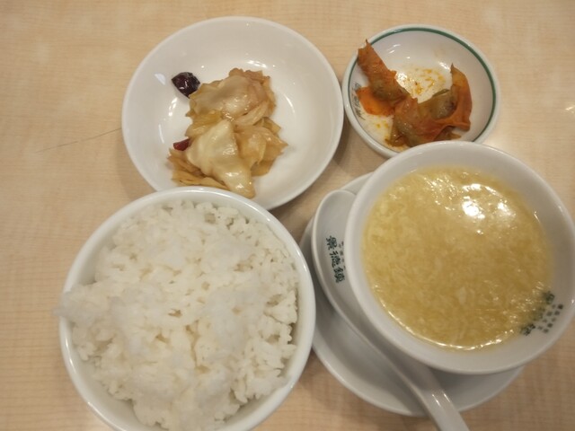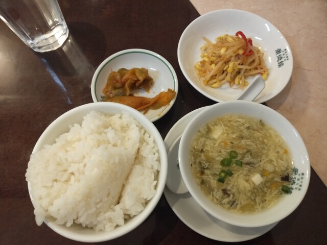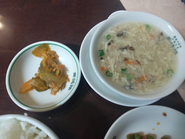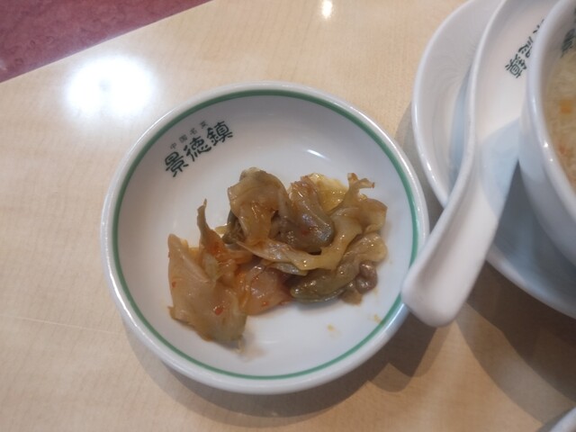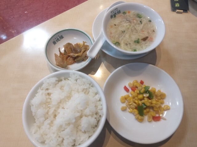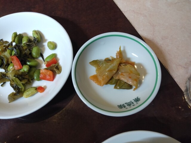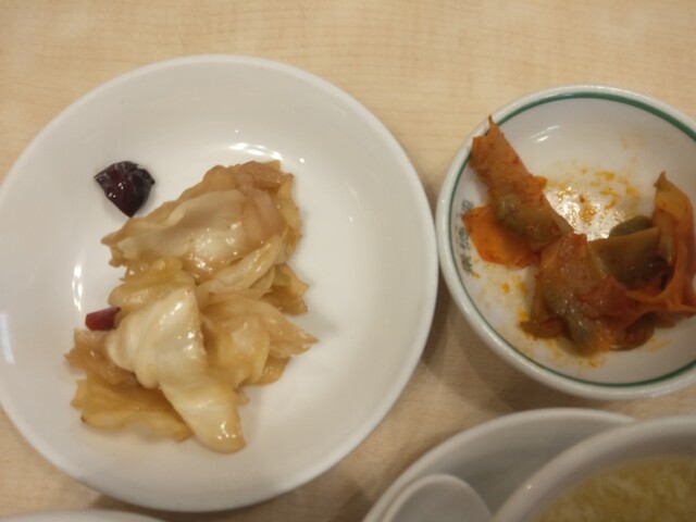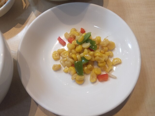 コーンスープはねっとりした少しの重さがあり、メンマはピリッと辛さがあり、キャベツの酢漬けの酸味も良く。