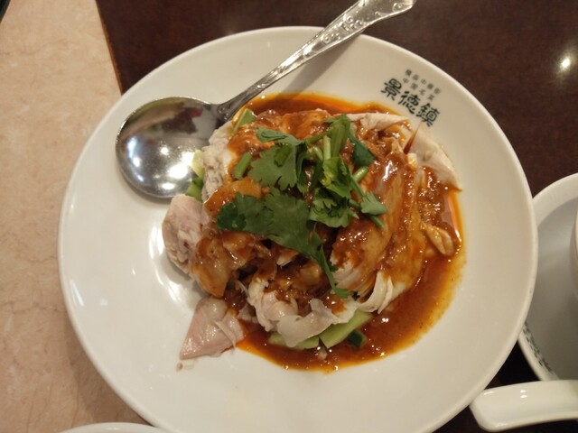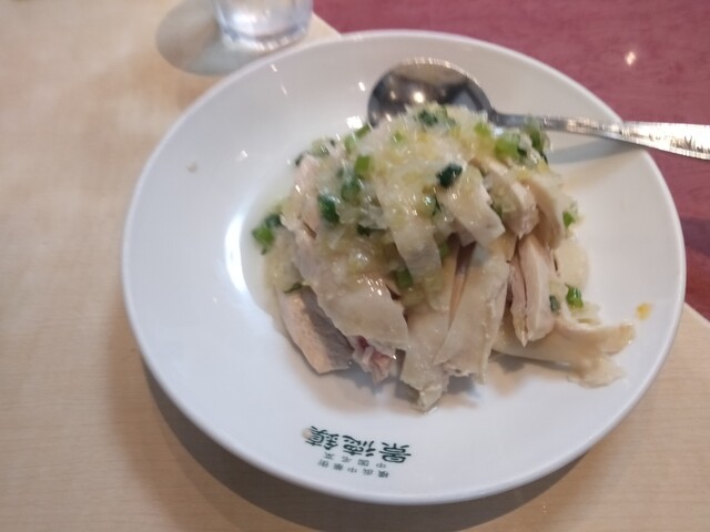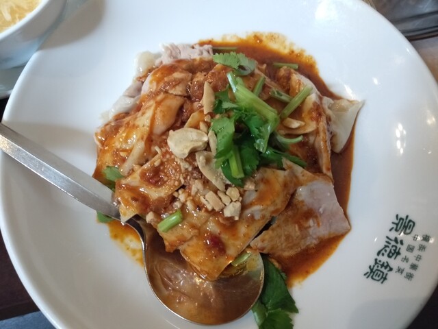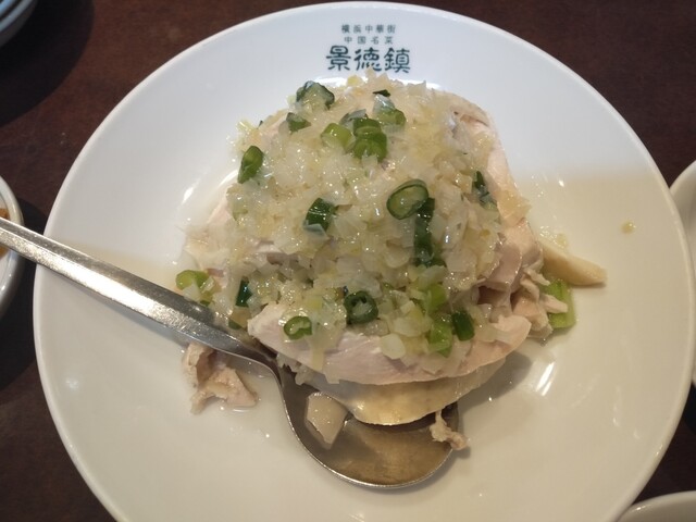 よだれ鶏のネギ油掛けは、むね肉の淡白さとネギ油の濃い脂分がとてもよくマッチしている。
