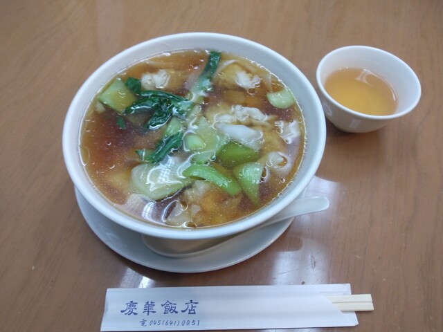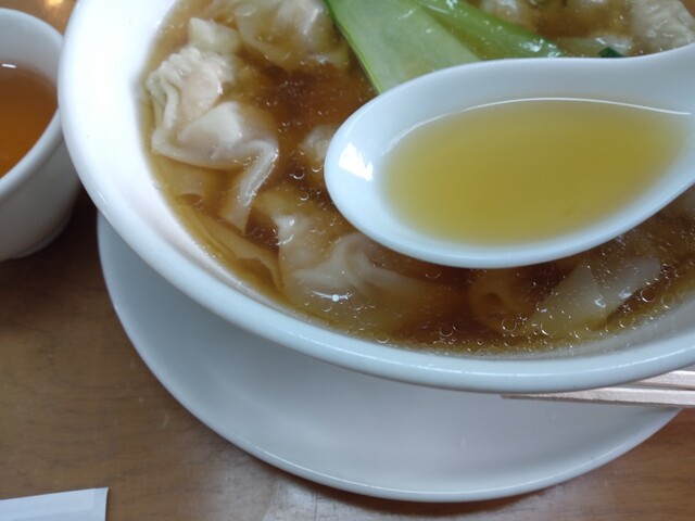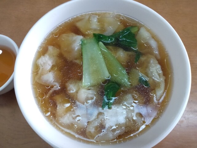 肉厚の海老ワンタンと澄んだスープが絶品です。