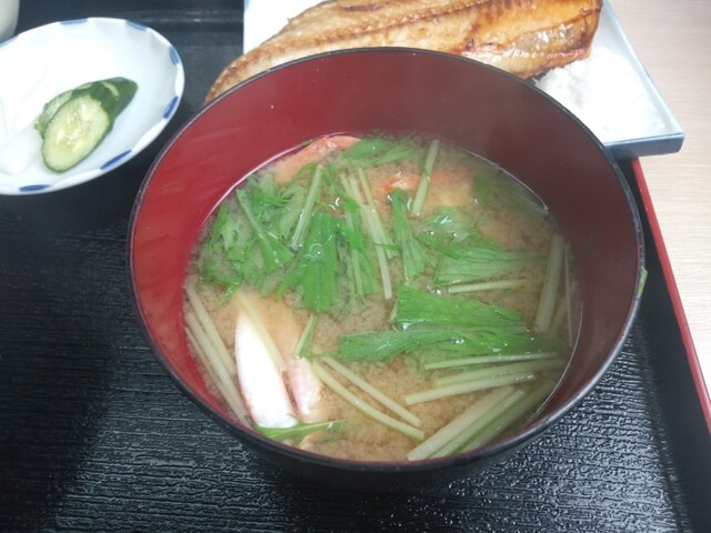 キュウリ、ゆずの皮の酢の物、水菜と蜆の味噌汁。