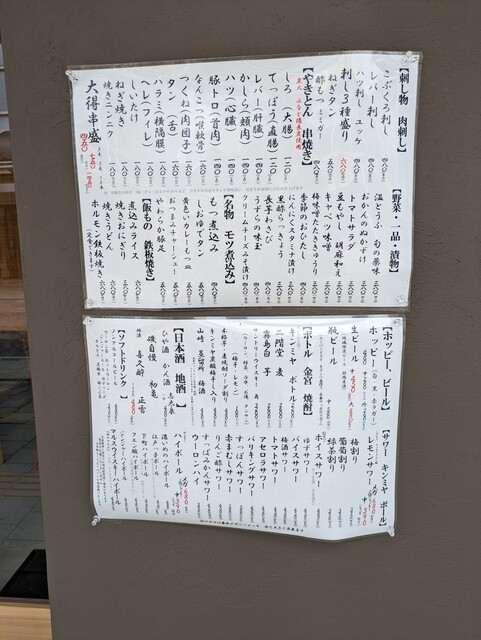 こぶくろ・レバー・ハツの3種盛、カシラ焼、タン焼、ハツ焼、トマトサラダ、もつ煮込み、ぬか漬けなどを頂きましたが、どれも美味しかったです。