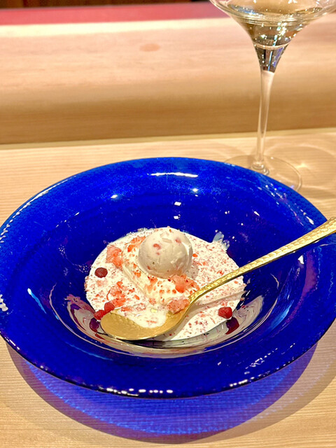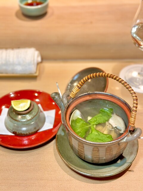 熱を帯びた柚子の果汁が全体をまとめあげ、甘い香りと軽やかな酸味が後口を引き締め、口の中で味が変化していく「香りの料理」として成立しています。最後まで飽きさせない、香り・旨味・甘酸っぱさが見事に一体化した一品でした。