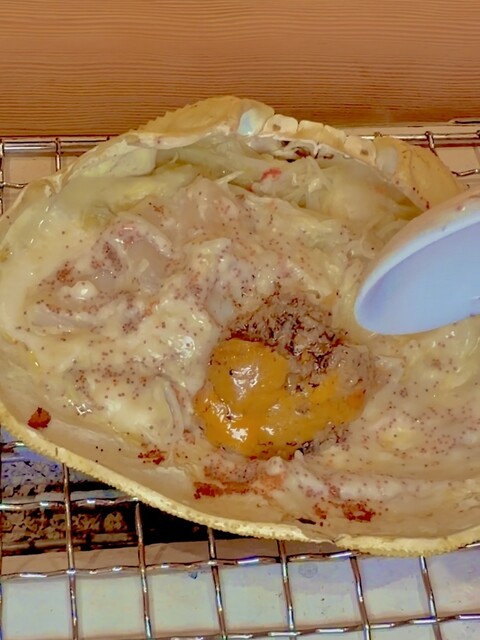 甲羅焼きは濃厚な蟹味噌を主体にしながらも、ほぐした身の旨味がしっかりと溶け込み、ひと口ごとに奥行きのあるコクが押し寄せます。