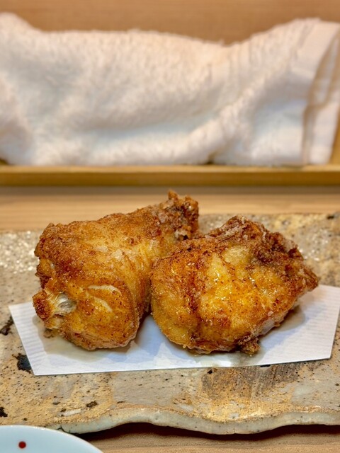 河豚の唐揚げ・・・外側はカリッと、身はふっくらとした火入れ。淡白な味の中に上品な旨味があり、衣の香ばしさが絶妙です。