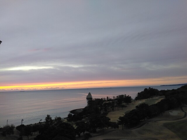 コンパクトツインのお部屋で、ゴルフ場ビュー。左側に水平線が見えます。