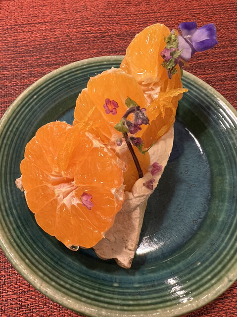 今回は旬のフルーツタルト(肥のさきがけみかん)、チェリーとクリームチーズのケーキ、ヘーゼルナッツとチョコレートのケーキ、プリンを購入。