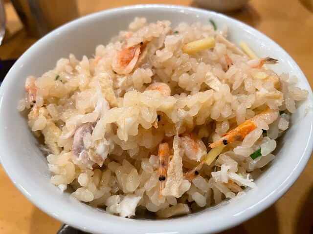 焼き菜の花の香ばしく、春らしい味が口の中に広がります。お吸い物は、帆立や椎茸の良い出汁が出てます。お造りは、どれも新鮮で甘さがあります。フグの唐揚げ、鯛飯と和食の王道を堪能しました。