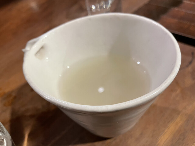 この日唯一熱燗で提供いただいのは、福島県の仁井田本家の人気だといううすにごり酒。。。その名の通り、メロンを想わせる芳醇な香りにバランス良いジューシーな甘味と酸味が素晴らしく白子の濃厚さに太刀打ちするにはこのくらい酒でないと無理ですね。。。