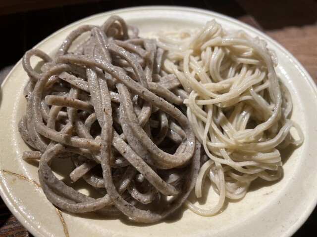 最後の蕎麦はせいろと、お得意の黒そばの2種盛り。。。さっぱりしたせいろの喉コシともちもちした食感と蕎麦の風味が堪能できる黒そばを贅沢にいただき、大満足。。。